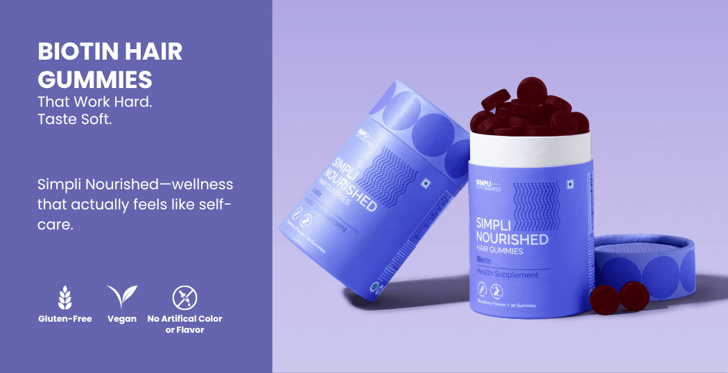 If you're dealing with thinning strands, excess fall, or dull, lifeless hair—your body might be missing key nutrients. Simpli Nourished Hair Gummies are a science-backed way to fill those gaps deliciously.